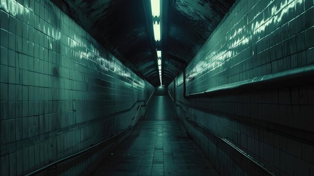 Glowing neon dance text in futuristic 3d tunnel environment