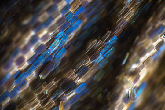 Madagasgan Sunset Butterfly, Fragment of the wing of a tropical butterfly. Colors of rainbow. Abstract butterfly wing pattern close up/ Selective focus.