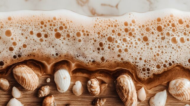Golden swirling liquid mixing with water foam in abstract surrealism