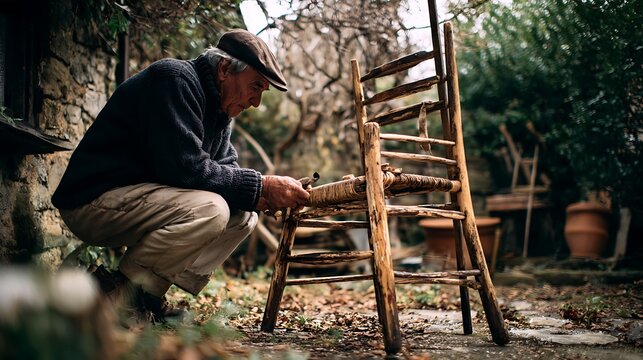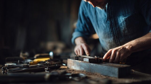 Craftsman at Work: Witness the dedication of a craftsman, meticulously working on a project with tools, reflecting the passion and skill of traditional craftsmanship.
