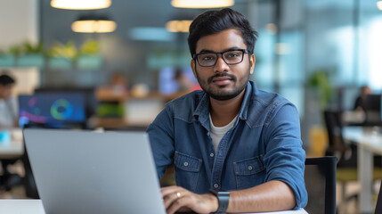 Focused developer working on laptop in modern office