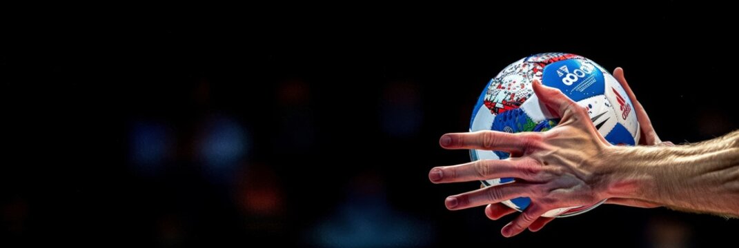 Handball player s strong grip on ball in summer olympic games, showcasing control and strength
