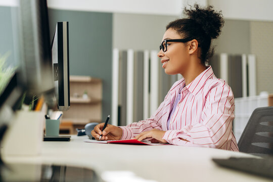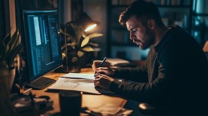 Focused Software Developer Taking Notes In Modern Workspace Images
