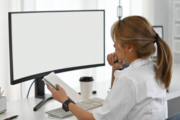 An Asian Woman Coder Working with Multi-Screen Setup and Taking Notes