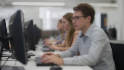 Students engaged in learning programming cioding skills, high school environment with focused students on digital screens, developing future software engineers in tech-driven education