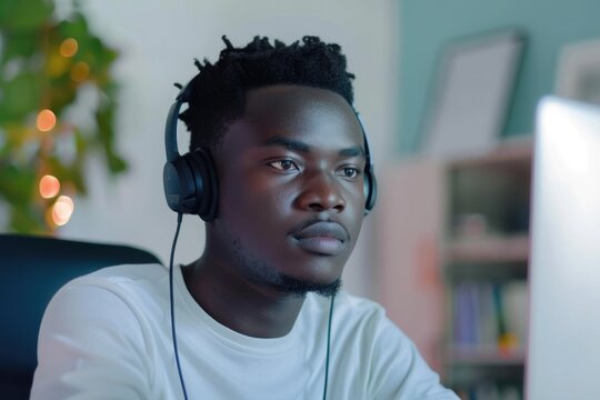 Online Webinar: Focused African American Businessman Engaged in Virtual Study Session