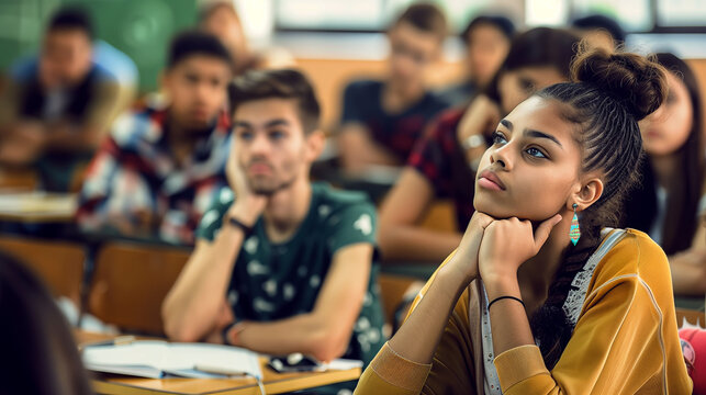 Attentive students concentrating in classroom setting