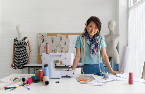Young Designer Focusing on Creative Dress Design in Fashion Studio During Afternoon