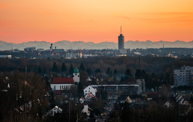 Aerial view on Marienplatz town hall and Frauenkirche in Munich, Germany