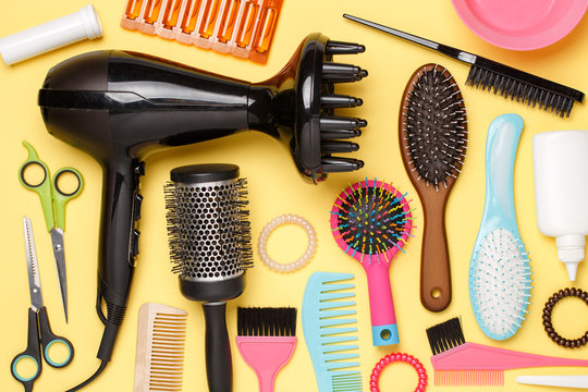 Beautiful teen girl dries hair a hairdryer in bathroom