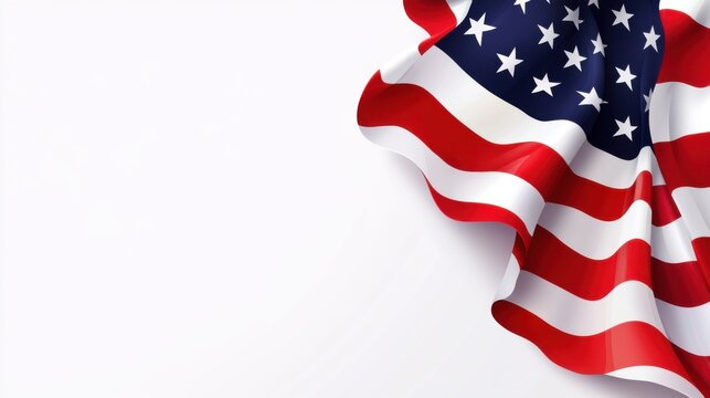 Flowing american flag on white background with space for text representing patriotism and national pride