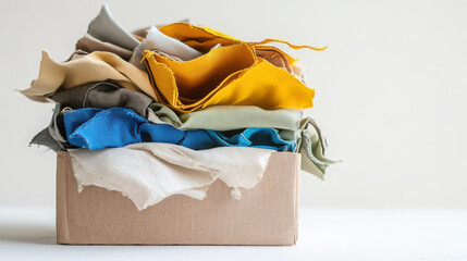 Colorful assortment of folded textiles in box for fabric crafting and design inspiration