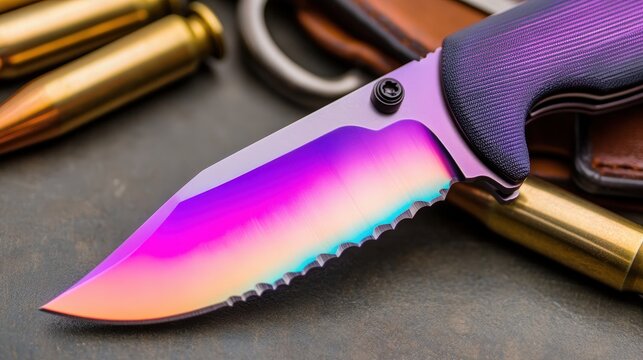 A man in blue jeans and a white t-shirt with a black pocket folding knife in his hand. Male aggression with fists and a sharp knife