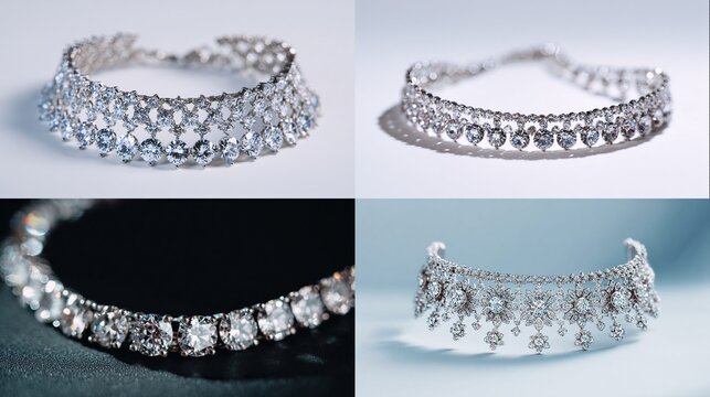 Diamond Necklaces Adorn Surface Sparkly Elegance on Display in Studio Shot Layout