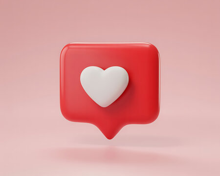 Red Heart Like Notification Bubble with White Background - Cinematic Render