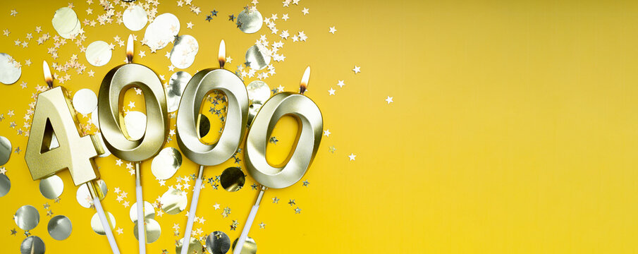 4K followers card. for social networks and blogs. Golden candles number four thousand on yellow background. followers card. 4000 online community fans and subscribers. banner.