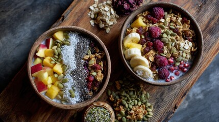 Minimalist presentation of natural bowl ingredients with timeline