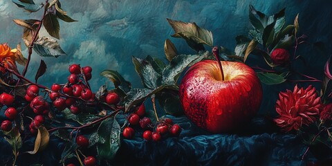 Enchanting fruit tree orchard with lush multicolored harvest, garden of eden concept