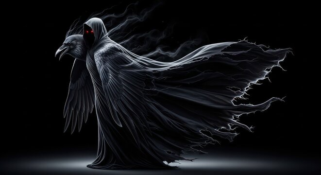 cloudcovered valley with rocky slopes, foreboding landscape of stormy weather and rugged terrain