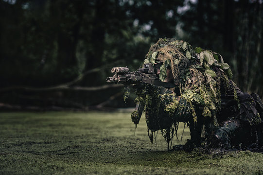 Man relaxing in hammock by tranquil lakeside edge near forest