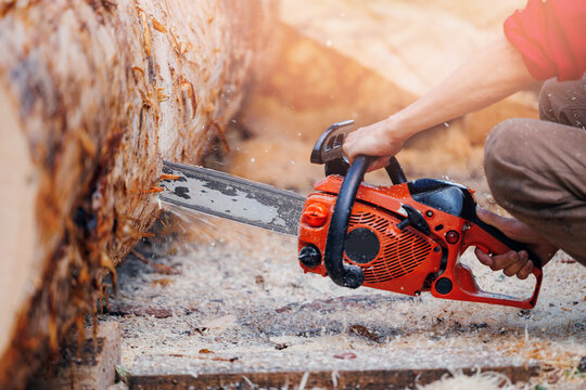 Forestry Worker Using Chainsaw To Fell Tree Images