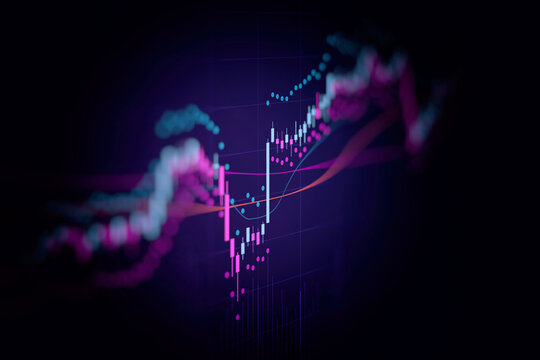 Abstract financial graph with candlestick chart in stock market on dark background