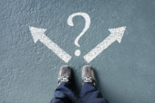 A man stands at a crossroads. Selective focus.