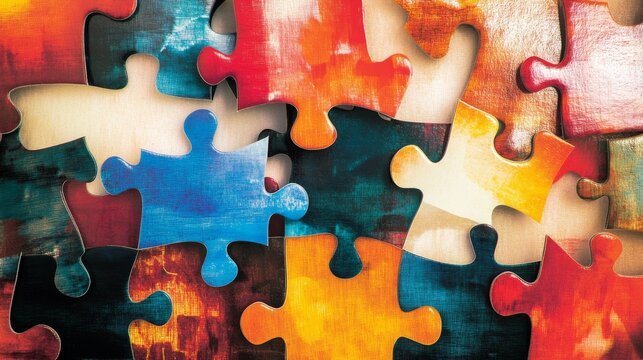 An abstract representation of equity in action, depicting a series of diverse-sized puzzle pieces fitting together seamlessly to form a complete image