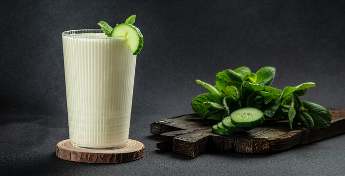 Turkish traditional drink ayran, kefir. clean eating for weight loss. Long banner format. place for text