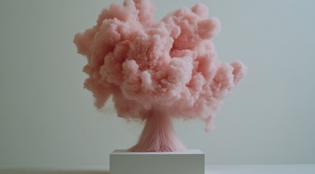 Human Head Sculpture Formed Entirely From Delicate Pink Roses.