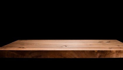 a flat wooden shelf horizontal and isolated against a black background