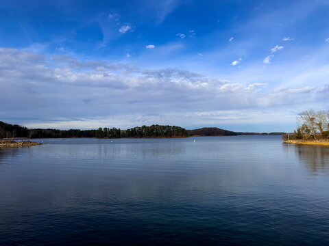This is the view from the West Bank Park on Lake Lanier in Forsyth County, Georgia.  There are a few clouds on the horizon but it’s a very sunny day.