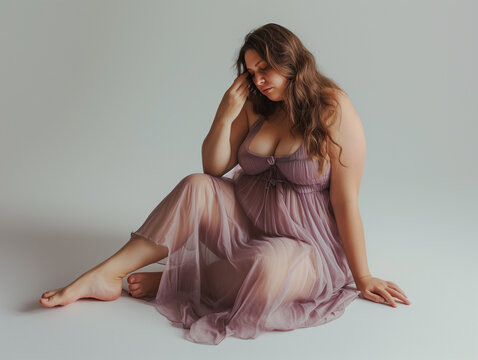 Femme ronde mannequin qui pose en chemise de nuit, célébration de la différence et de la beauté pour toutes les tailles, body positive