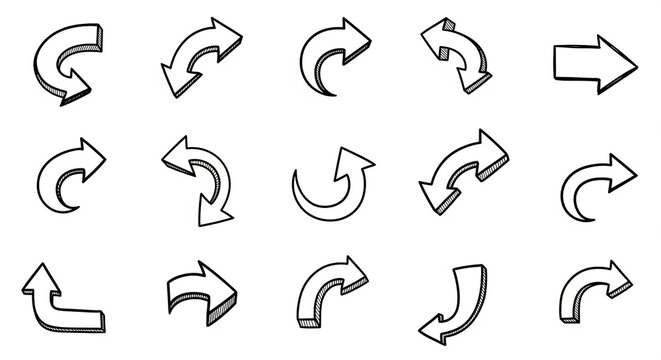 Doodle arrows drawing indicating direction and movement set