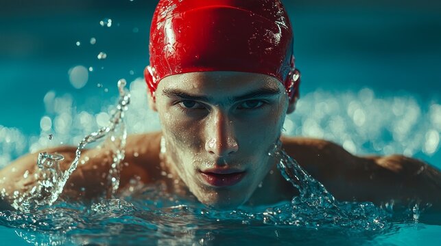 With determination etched on his face, a young swimmer cuts through glistening water, showcasing resilience and strength. Each powerful stroke propels him forward as droplets cascade around him