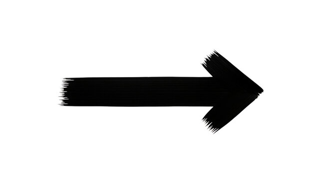 Black brush stroke arrow pointing to the right, isolated on transparent background