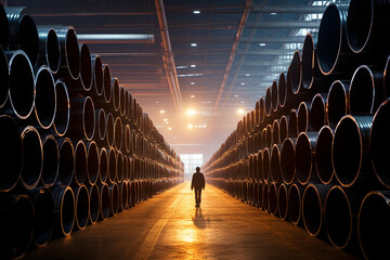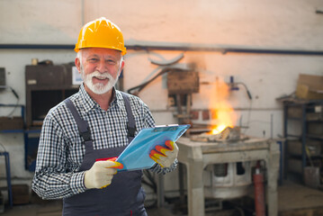 A steelworker is tending to a furnace in a steel mill, wearing heat-resistant clothing, working under extremely high temperatures,Hot molten metal in steel plant