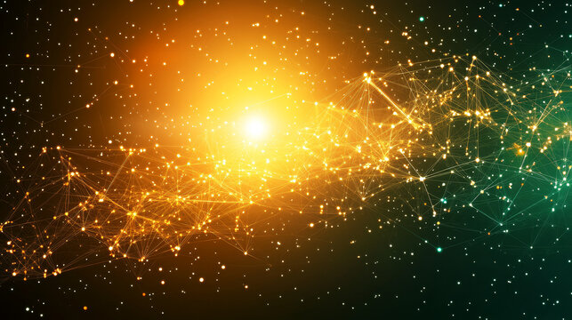 Satellite View of Earth with Golden Connection Points, Abstract Representation of Digital Networks, Deep Space Background with Star Bokeh, f/4.0