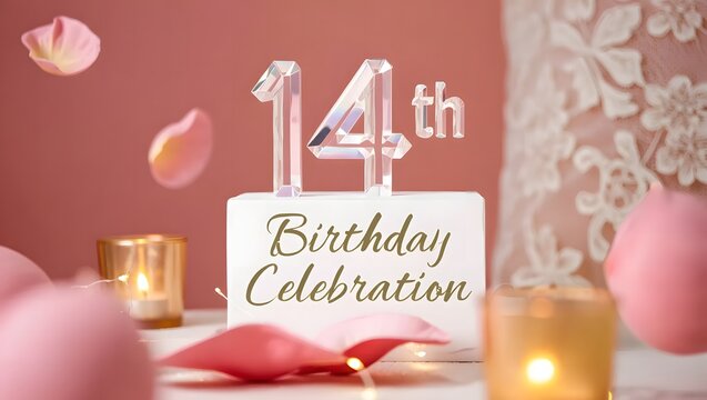 A festive fourteenth birthday celebration with pink roses and candles creating a warm and joyful atmosphere for a memorable and sweet anniversary event