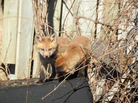 Wild baby red fox at the beach, June 2020, Nova Scotia, Canada