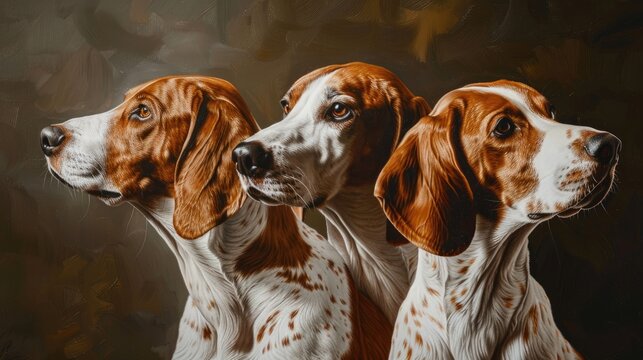 Portraits of American Fox Hound Dogs