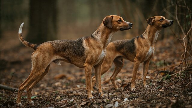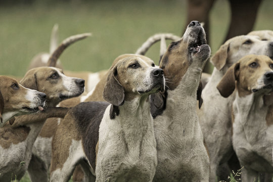 Hunting-ready foxhound dogs