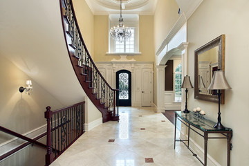 Entryway interior historic foyer traditional decor window white railing rowhome