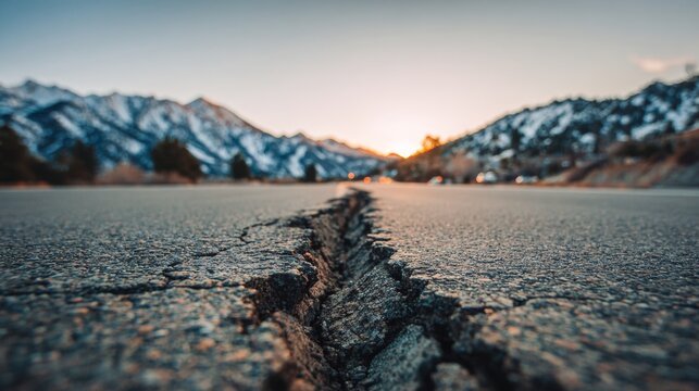 Cracked Asphalt Textures: A close-up shot captures the intricate texture of a cracked asphalt surface, revealing a network of fractured patterns, conveying a sense of age, wear.