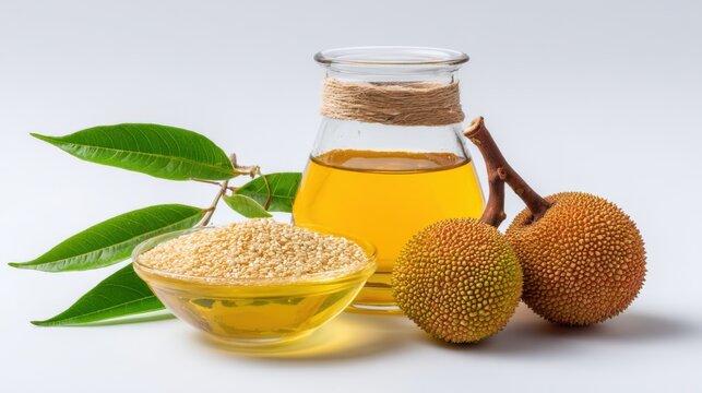 Natural tropical product composition with fragrant oils and fresh lychee fruits.