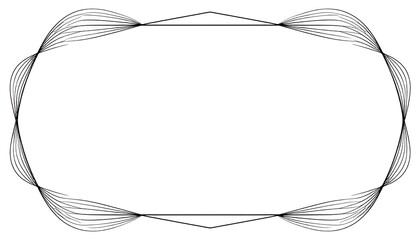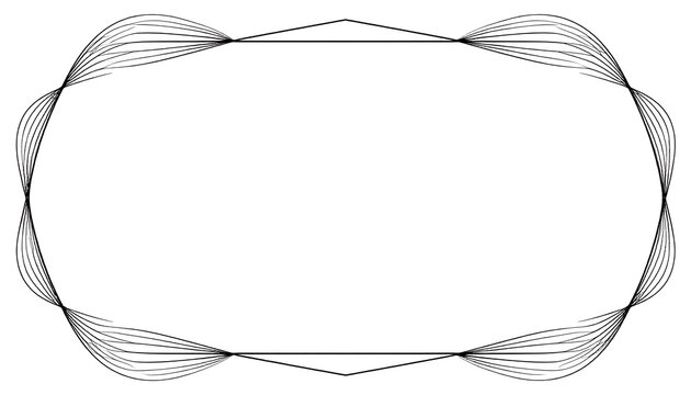 Geometric shape with curved lines radiating from its vertices on a white background, framing empty space