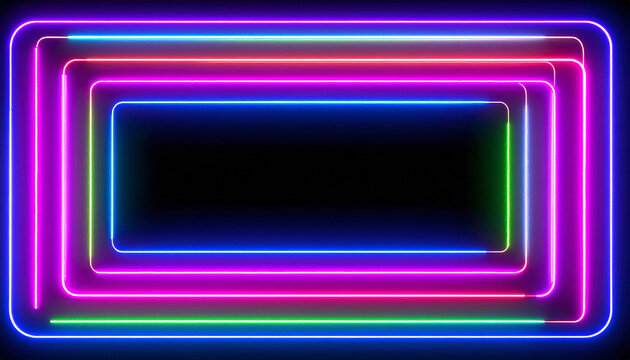 Futuristic neon hex tunnel with glowing led frames and infinity mirror passage