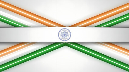Geometric lines in India's tricolor intersect dynamically, framing a central Ashoka Chakra on a white background.