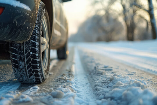 Frozen lake surface with crisscrossing ice cracks at sunrise