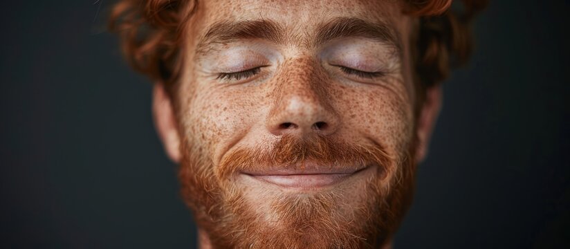 A close-up view of a man with freckles on his face, showcasing his unique features and facial expressions.